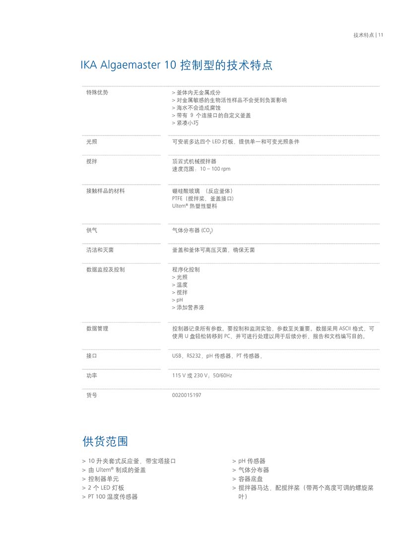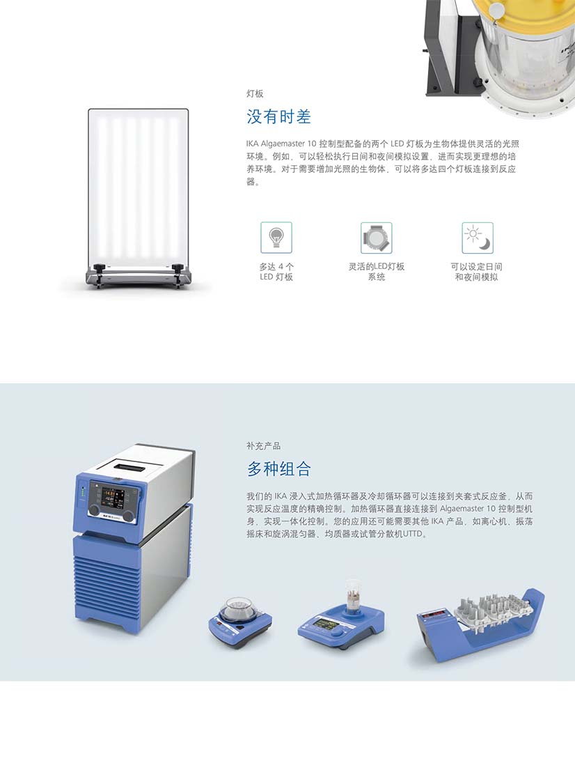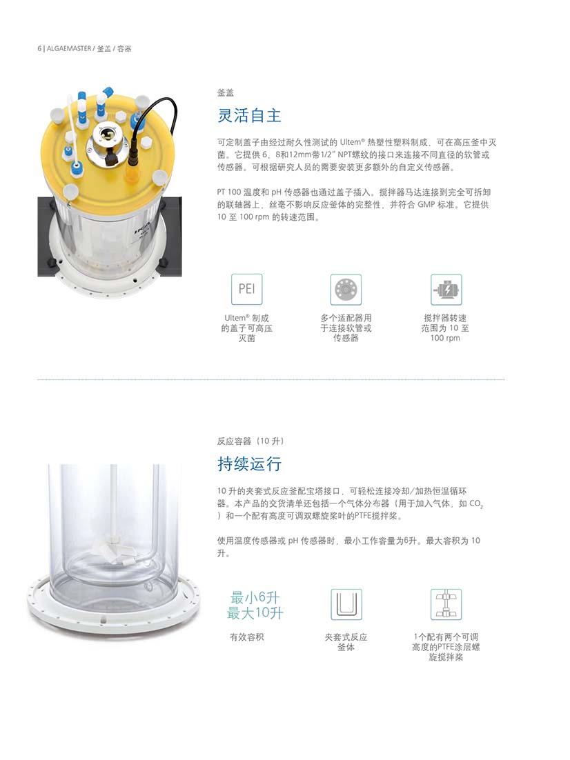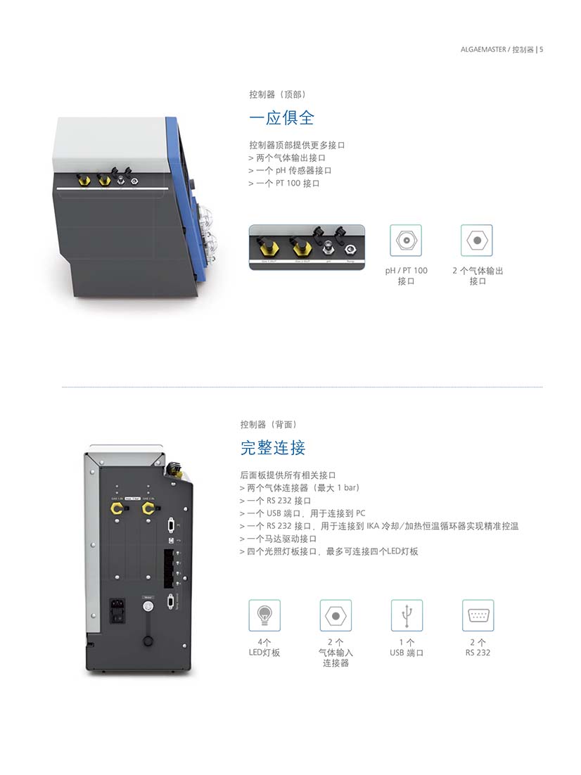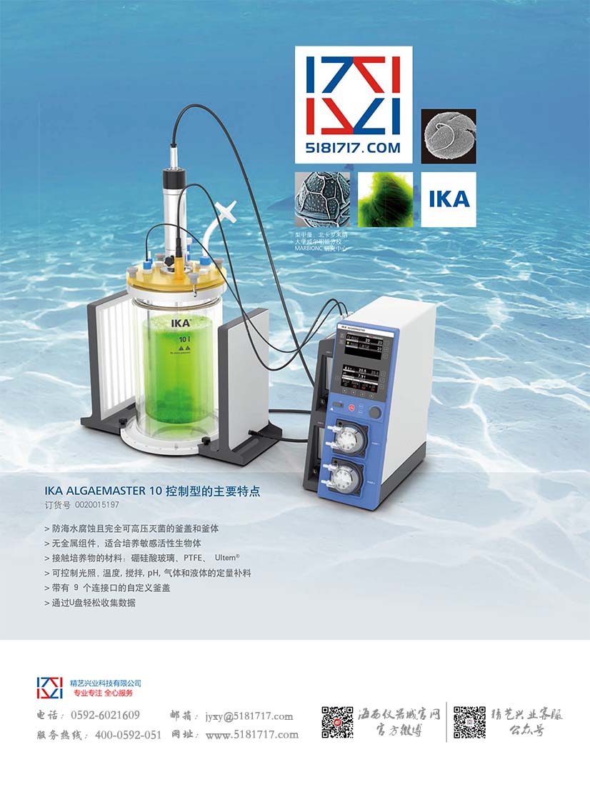 德國艾卡IKA光照生物反應器,防海水腐蝕且完全可高壓滅菌的帶有9個連接口的自定義釜蓋和釜體,無金屬組件,適合培養敏感活性生物體,接觸培養物的材料,可控制光照、溫度、攪拌、pH,氣體和液體的定量補料,可通過U盤輕松手機數據。