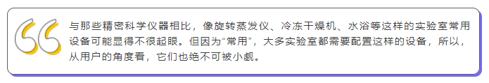 與那些精密科學儀器相比,像旋轉蒸發儀(以下簡稱:旋蒸儀)、冷凍干燥機(以下簡稱:凍干機)、水浴等這樣的實驗室常用設備可能顯得不很起眼。但因為“常用”,大多實驗室都需要配置這樣的設備,所以,從用戶的角度看,它們也絕不可被小覷。