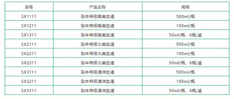 SORFA為更好滿足市場(chǎng)上用戶們的不同需求,專門優(yōu)化了3款9個(gè)規(guī)格的進(jìn)口血清,具體產(chǎn)品規(guī)格如下: