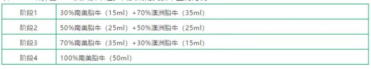 以500ml培養(yǎng)基10%澳洲胎牛逐步替換成南美胎牛血清為例